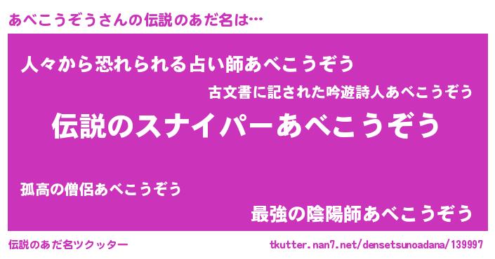 | ヒーロー風カッコイイあだ名 | 『スーパーアベコウゾウ』 |