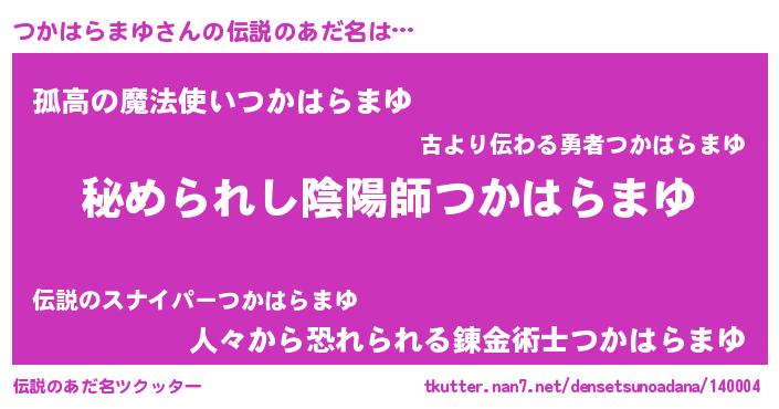 | 意味不明あだ名 | 『自称つかはらまゆ』 |