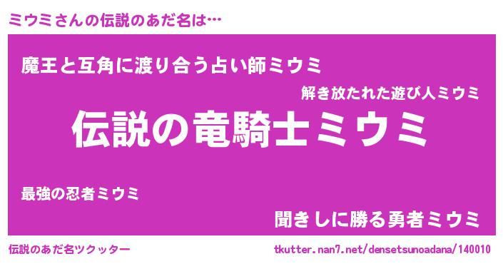 | ポケモン風あだ名 | 『ミウゴンZ』『ミウチュウ』 |