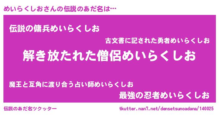 | 意味不明あだ名 | 『とにかく怪しいめいらくしお』 |