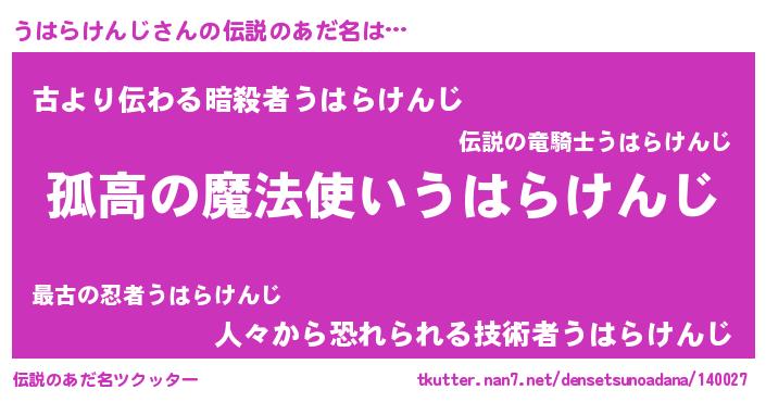 | 女子向けラノベタイトル風あだ名 | 『うはらけんじは平凡を望む』 |