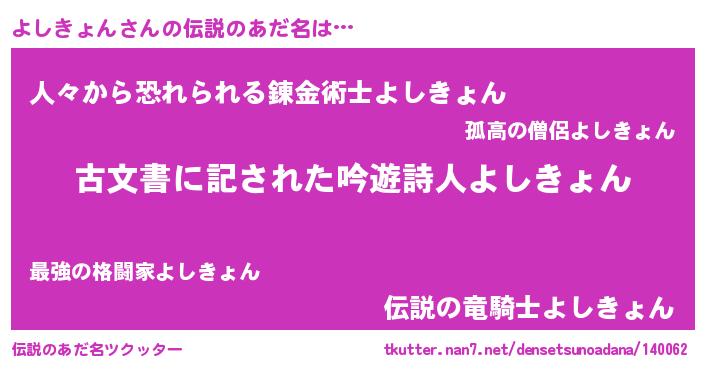 | 意味不明あだ名 | 『永久保存よしきょん』『自称よしきょん』 |