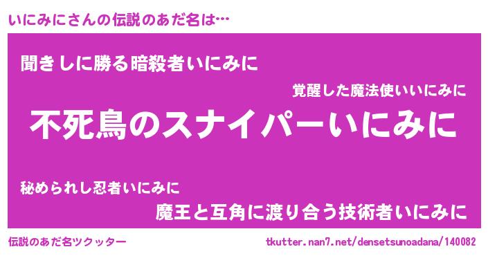 | 意味不明あだ名 | 『なめこ科いにみに属』『自称いにみに』 |