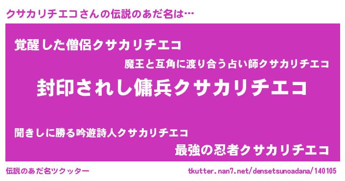 | 意味不明あだ名 | 『自称クサカリチエコ』 |
