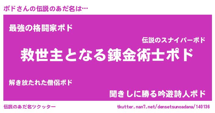 | 女子向けラノベタイトル風あだ名 | 『ポドの玉の輿計画!』『ポド恋絵巻』 |