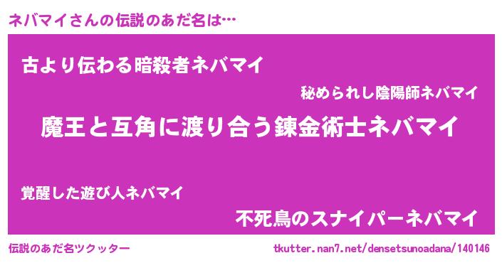 | ヘコむあだ名 | 『ネバマイ(遠い目)』『ネバにゅー』 |