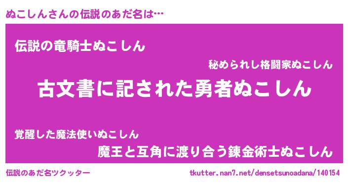 | ヘコむあだ名 | 『ぬこしん(苦笑)』『ぬこにー』 |