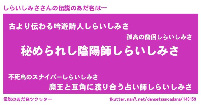 | ファンタジー風あだ名 | 『エターナルシライシミサー』 |