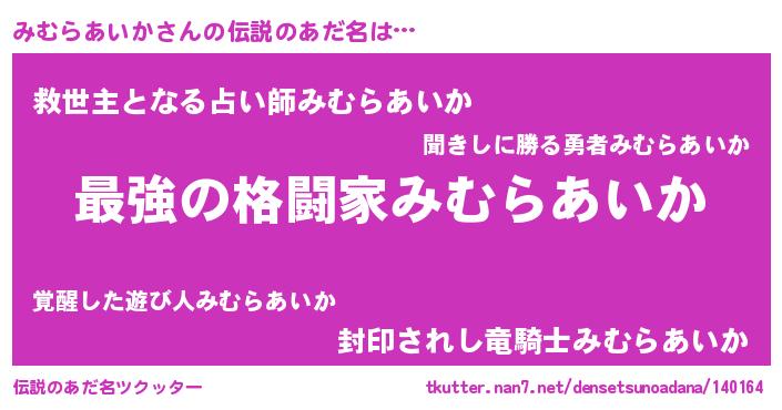 | 意味不明あだ名 | 『住所不定無職みむらあいか(13歳)』 |