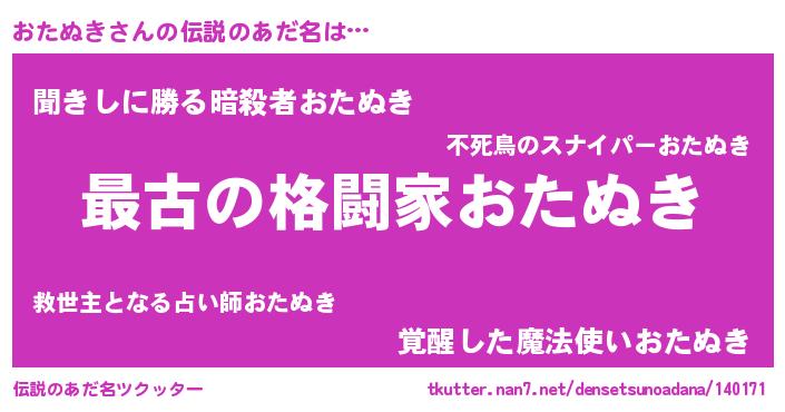 | 意味不明あだ名 | 『おたぬきフォーエバー』『自称おたぬき』 |