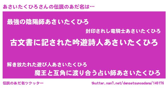 | 意味不明あだ名 | 『永久保存あさいたくひろ』 |