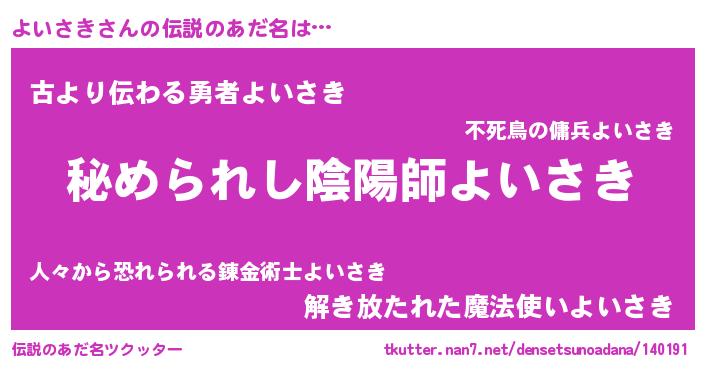 | ファンタジー風あだ名 | 『エターナルヨイサキー』『ゼヨイトゥ』 |