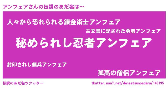 | ポケモン風あだ名 | 『アンキング』『アンフダネ』 |