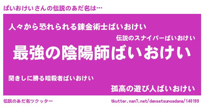 | ヒーロー風カッコイイあだ名 | 『仮面バイダー』『超時空戦士バイオケイ』 |