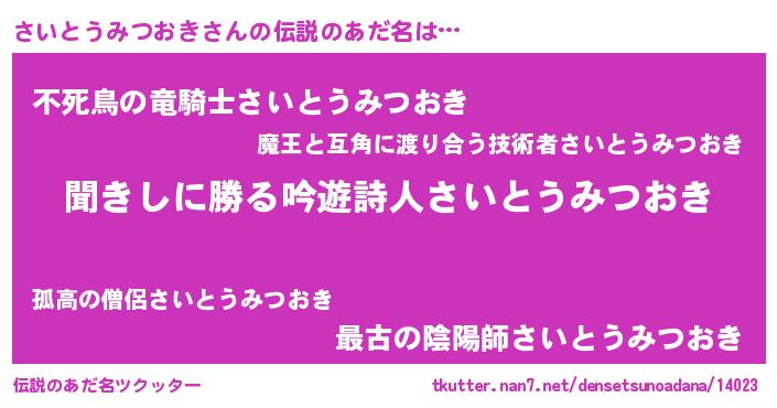 | ヘコむあだ名 | 『さいとうみつおき(小並感)』『さいにー』 |