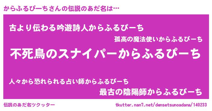 | ヘコむあだ名 | 『からっふぃ~』『からふるぴーち(小並感)』 |