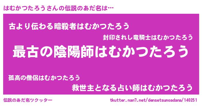 | ヒーロー風カッコイイあだ名 | 『ウルトラはむかつたろうマン』 |