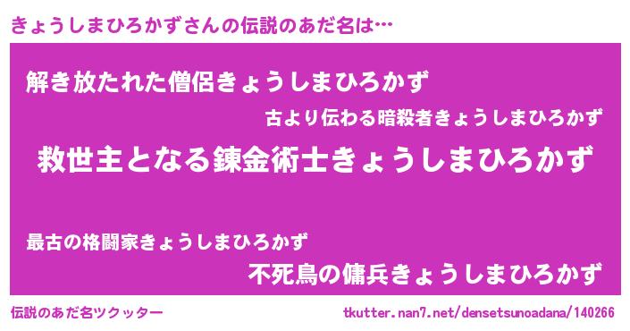 | ヒーロー風カッコイイあだ名 | 『天空の使者きょうしまひろかず』 |