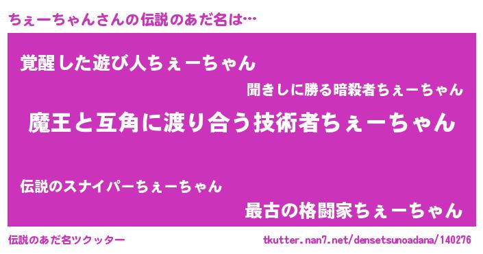 | 女子向けラノベタイトル風あだ名 | 『ちぇーちゃん恋絵巻』 |