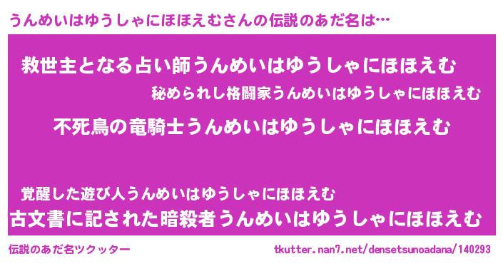 | ヒーロー風カッコイイあだ名 | 『スーパーウンメイハユウシャニホホエム』 |