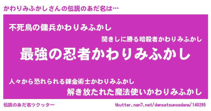 | 意味不明あだ名 | 『自称かわりみふかし』 |