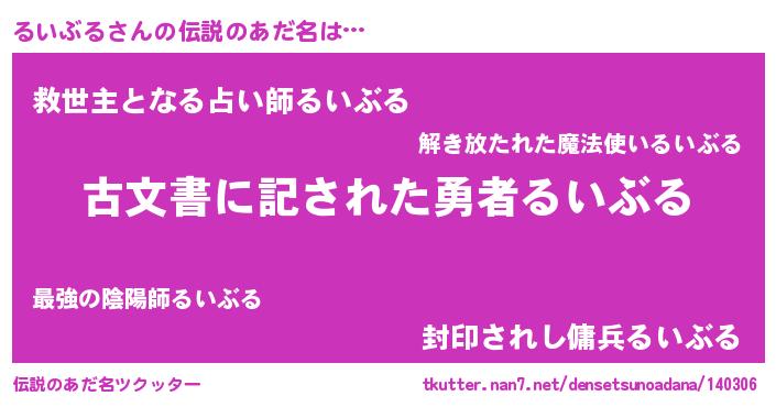| ヒーロー風カッコイイあだ名 | 『ネオルイブル』『天空の使者るいぶる』 |