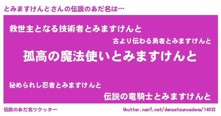 | 男性向けラノベタイトル風あだ名 | 『トミマスケントスレイヤー』 |