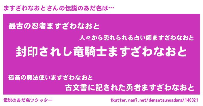 | 男性向けラノベタイトル風あだ名 | 『マスザワナオトアートオンライン』 |