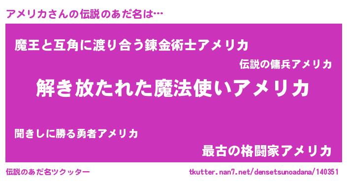 | 胡散臭い通販商品みたいなあだ名 | 『伝統あるサプリメント…その名も「アメリカ」』 |