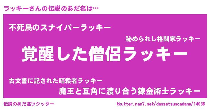 | ヒーロー風カッコイイあだ名 | 『幻影騎士ラッ』『仮面ラッダー』 |