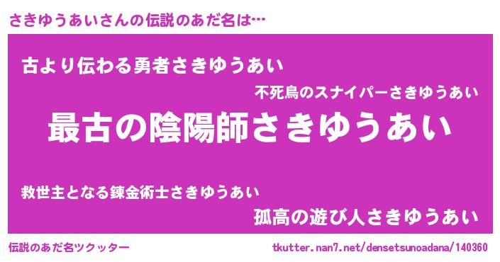 | 男性向けラノベタイトル風あだ名 | 『さきゆうあいに滅ぼされるだけの簡単なお仕事です』 |