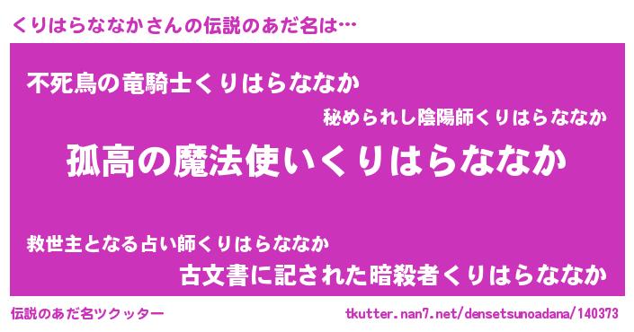 | 男性向けラノベタイトル風あだ名 | 『ダンジョンにくりはらななかを求めるのは間違っているだろうか』 |