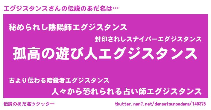 | ヒーロー風カッコイイあだ名 | 『黄金騎士エグ』『仮面エグダー』 |