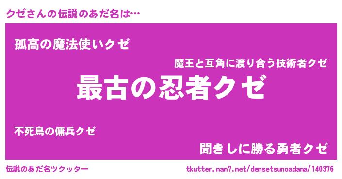 | ヒーロー風カッコイイあだ名 | 『ウルトラ戦士クゼ』『ウルトラクゼマン』 |