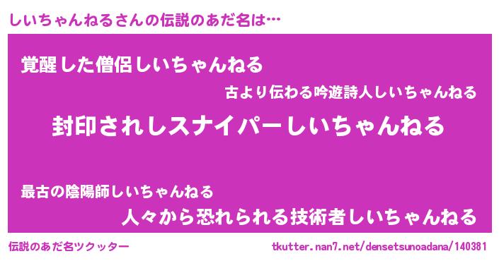 | 男性向けラノベタイトル風あだ名 | 『シイチャンネルアートオンライン』 |