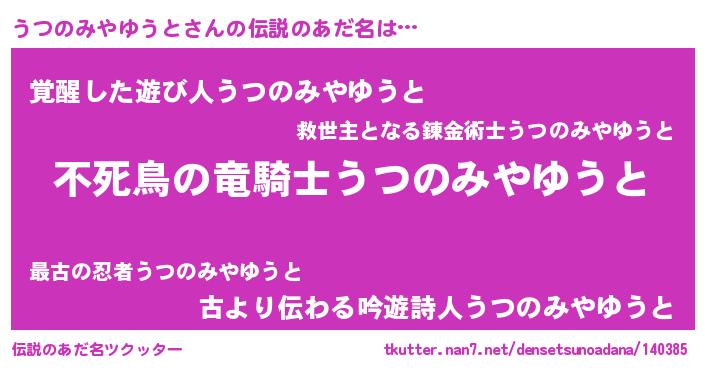| ポケモン風あだ名 | 『ウツチュウ』『ヒウツノミヤユウト』 |