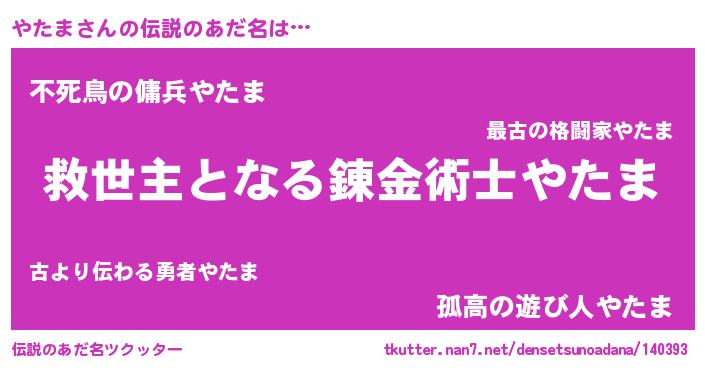 | 意味不明あだ名 | 『住所不定無職やたま(91歳)』『自称やたま』 |