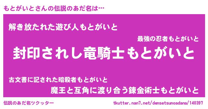 | ヒーロー風カッコイイあだ名 | 『スーパーモトガイト』『魔戒騎士モト』 |