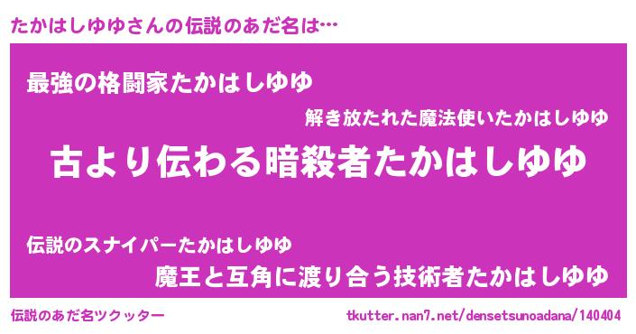 | ヒーロー風カッコイイあだ名 | 『ネオタカハシユユ』『仮面タカダー』 |