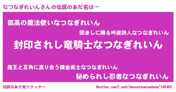 | 意味不明あだ名 | 『住所不定無職なつなぎれいん(2歳)』 |