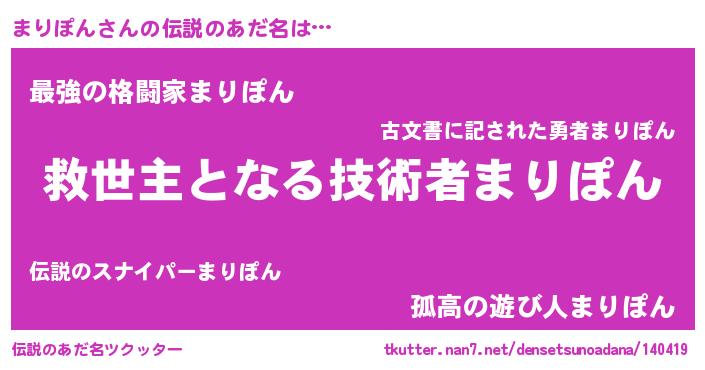 | 胡散臭い通販商品みたいなあだ名 | 『モンドセレクションを受賞したマグネット磁石…その名も「まりぽん」』 |
