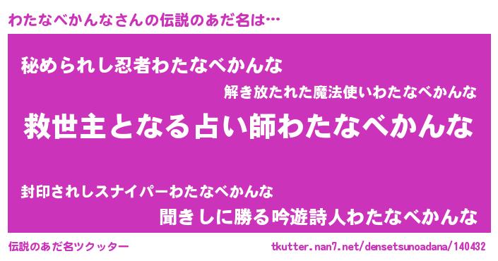 | 意味不明あだ名 | 『眠気覚ましガムわたなべかんな味』 |