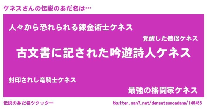 | ヒーロー風カッコイイあだ名 | 『ネオケネス』『天空の使者ケネス』 |