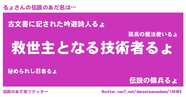 | ヒーロー風カッコイイあだ名 | 『慈愛の使者るょ』『最強戦士ルョ』 |