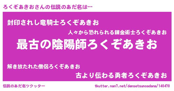 | ファンタジー風あだ名 | 『エターナルロクゾアキオー』 |