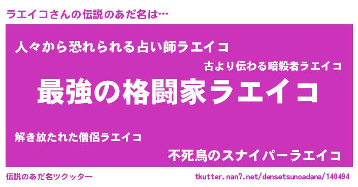 | 欧米人風あだ名 | 『ラエイコクリステル』 |