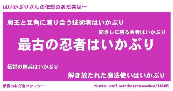 | 意味不明あだ名 | 『住所不定無職はいかぶり(56歳)』 |