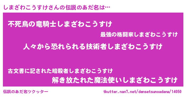 | 胡散臭い通販商品みたいなあだ名 | 『100人中100人が認めたマグネット磁石…その名も「しまざわこうすけ」』 |
