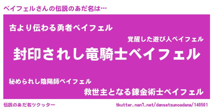 | 男性向けラノベタイトル風あだ名 | 『ベイフェルアートオンライン』 |