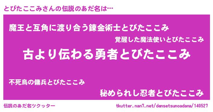 | 胡散臭い通販商品みたいなあだ名 | 『来世でも幸せになれる水素水…その名も「とびたここみ」』 |